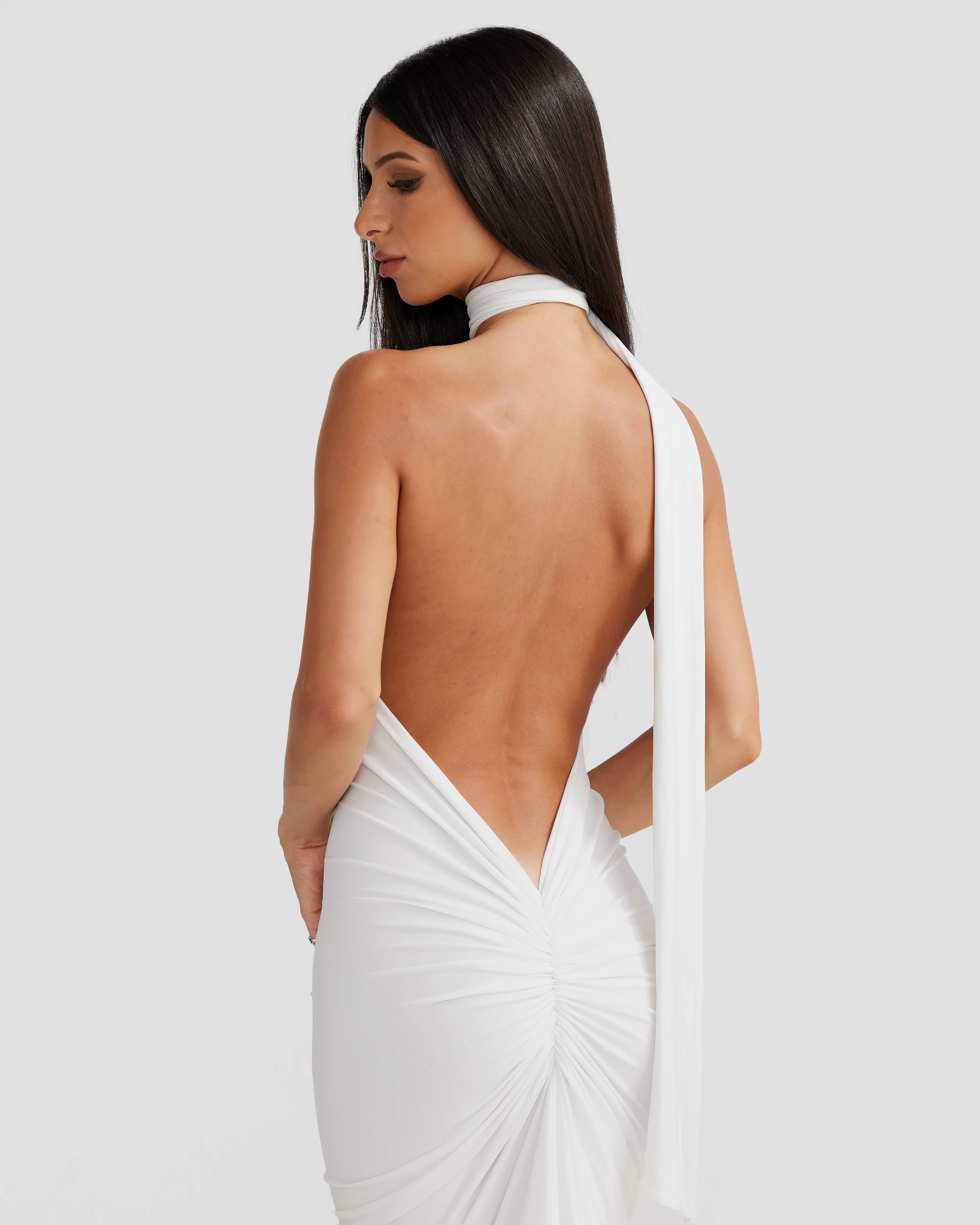 This form fitted silhouette features a timeless neckline that will never date. This classic piece will be the IT dress for years to come. Featuring none other than MÉLANI’S signature back detail.